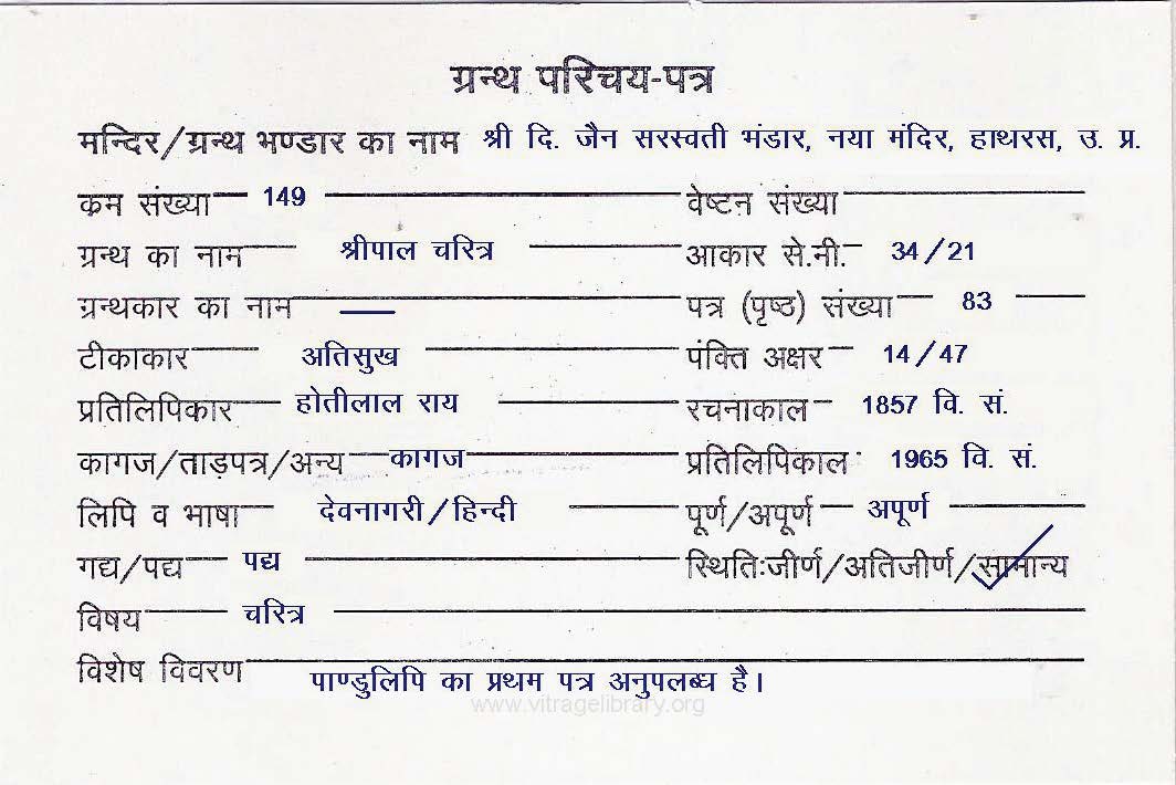 Manuscript Year | : | 1722 Vikram Samvat |