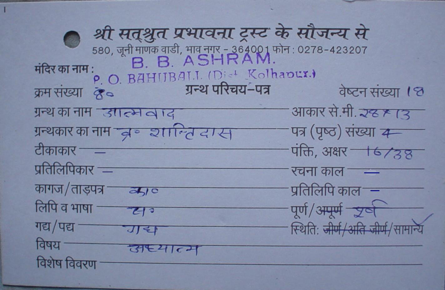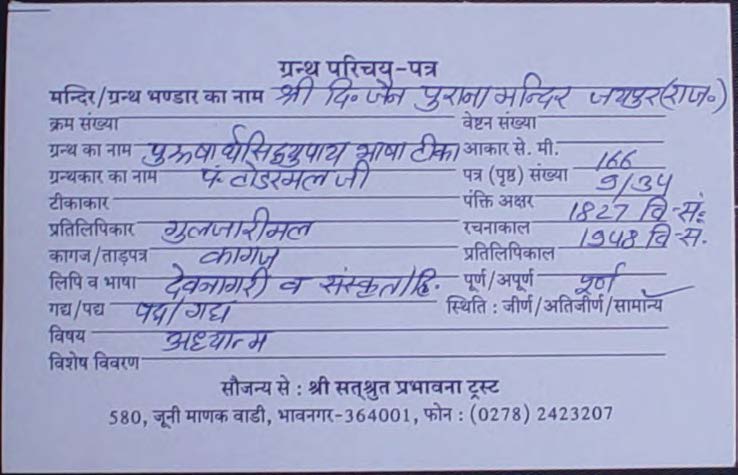 Source | : | Shree Digambar Jain Saraswati Bhandar Naya Mandir, Hathras (U.P.) |