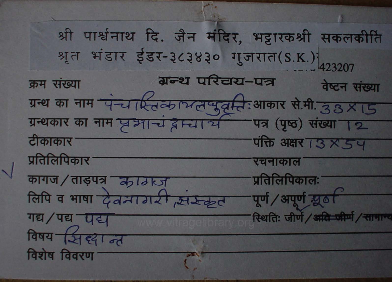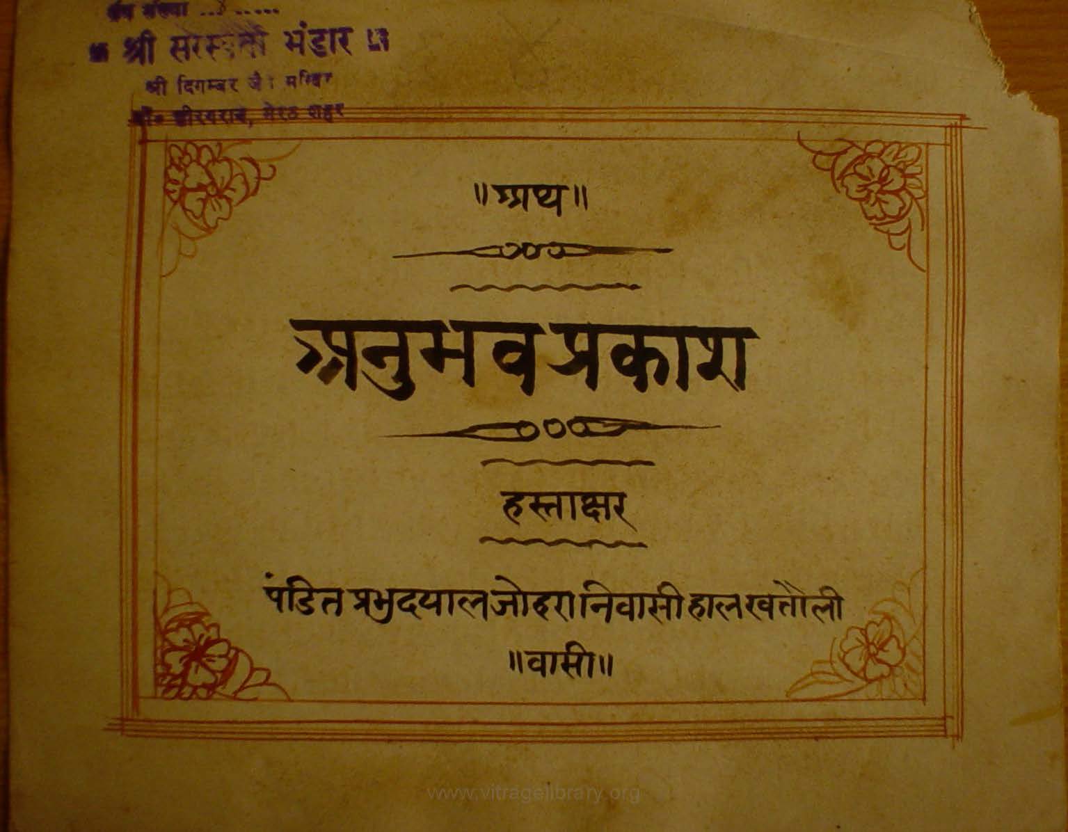 Manuscripted By | : | Pandit Prabhudayal Johara |