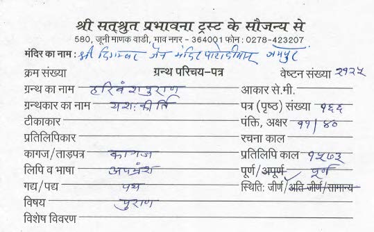 Granth : Bhavishyadutt Charitra