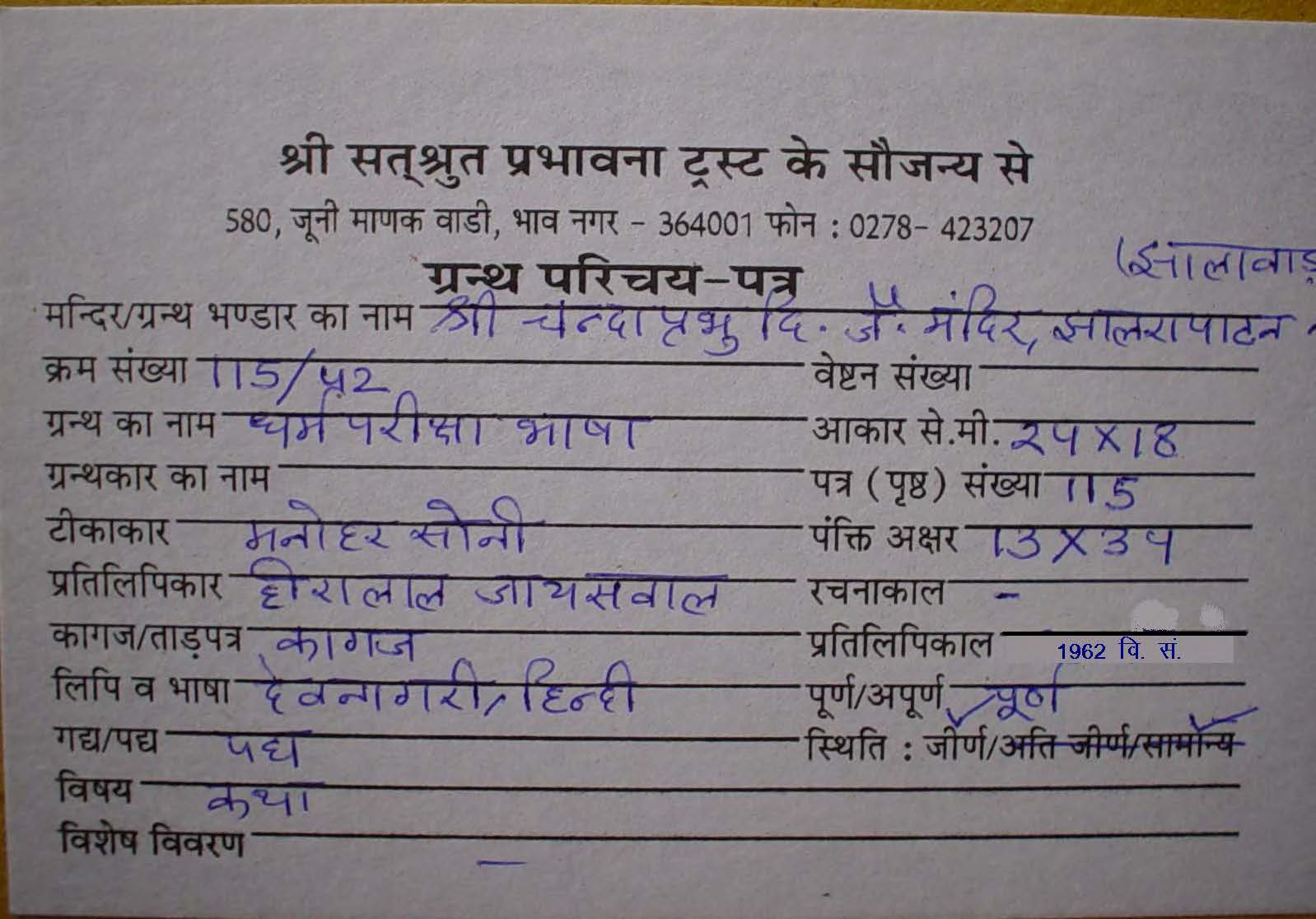 Source | : | Shree Parshwanath Digambar Jain Mandir, Bhattarak Sakalkirti Shrut Bhandar, Idar (Guj.) |