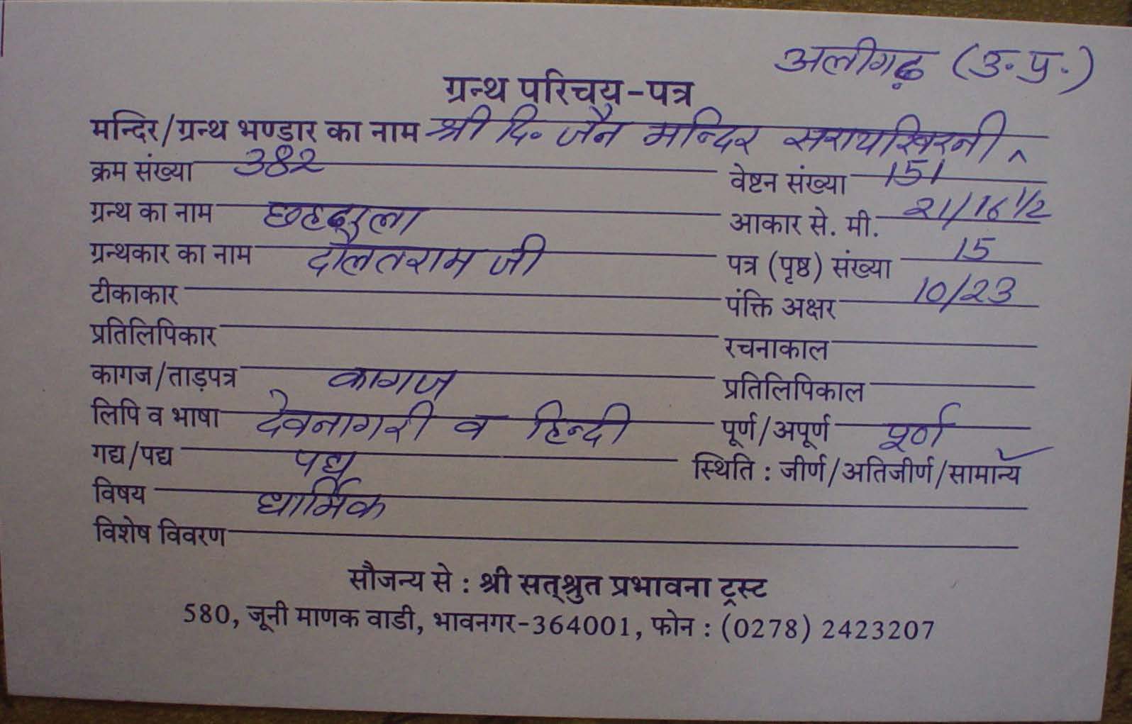Source | : | Shree Digambar Jain Saraswati Bhandar Naya Mandir, Hathras (U.P.) |