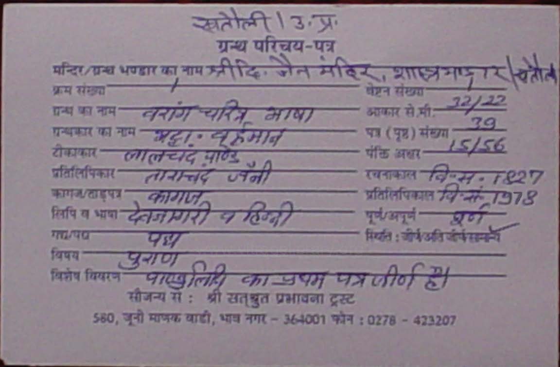 Source | : | Shree Digambar Jain Saraswati Bhandar Naya Mandir, Hathras (U.P.) |