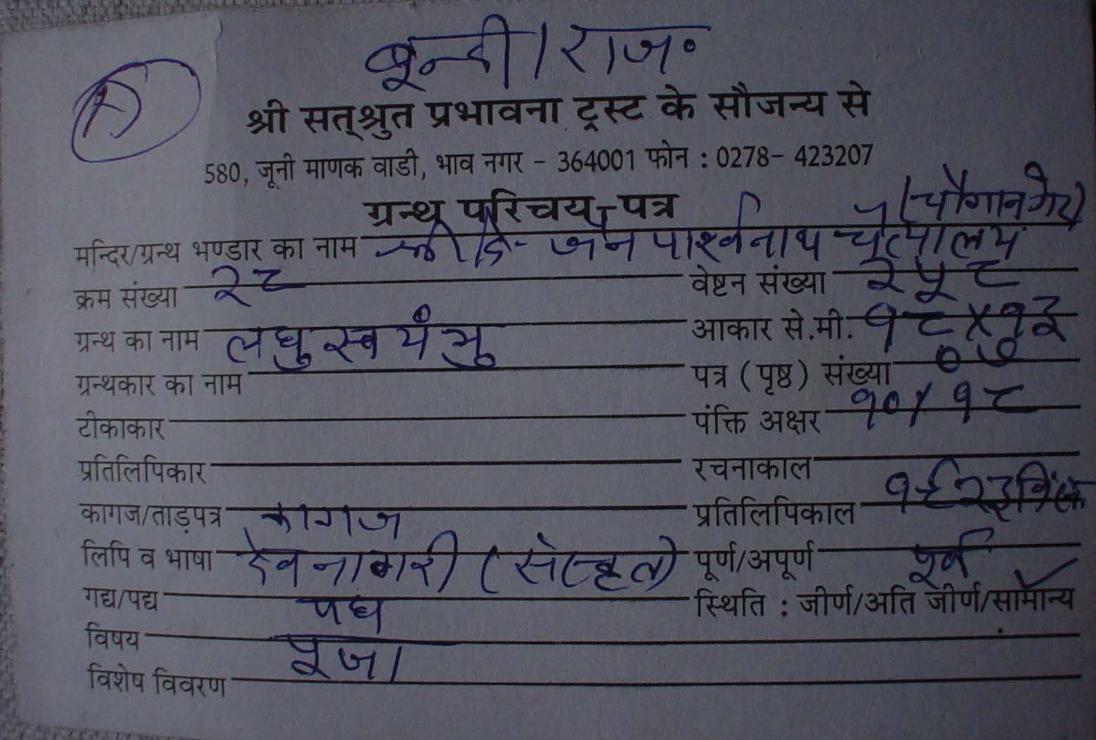 Manuscripted By | : | Sh. Shivdayal Choube |