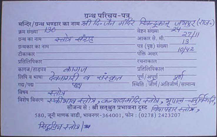Source | : | Shree Digambar Jain Saraswati Bhandar Naya Mandir, Hathras (U.P.) |
