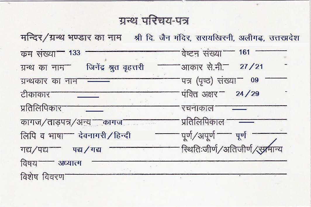 Source | : | Shree Digambar Jain Saraswati Bhandar Naya Mandir, Hathras (U.P.) |