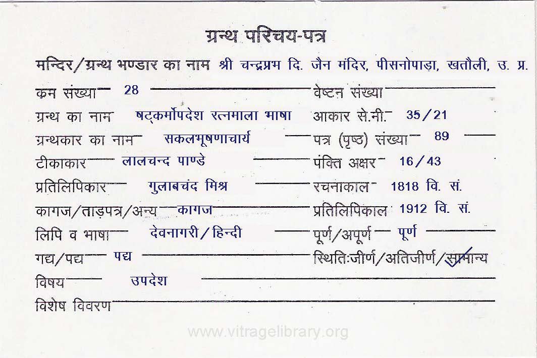 Source | : | Shree Digambar Jain Saraswati Bhandar Naya Mandir, Hathras (U.P.) |