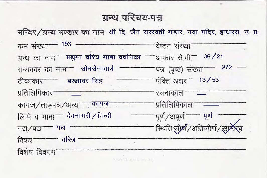 Granth | : | Pradhyumna Charitra Bhasha Vachanika |