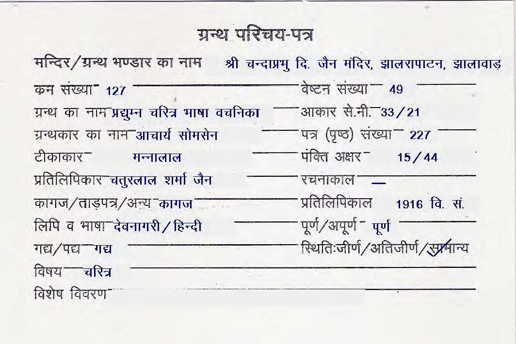 Granth | : | Pradyumna Charitra Bhasha Vachanika |
