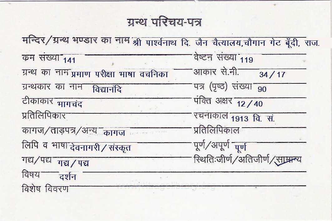 Granth | : | Praman Pariksha Bhasha Vachanika |