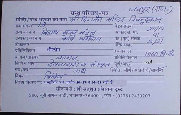 Source | : | Shree Parshwanath Digambar Jain Mandir, Bhattarak Sakalkirti Shrut Bhandar, Idar (Guj.) |