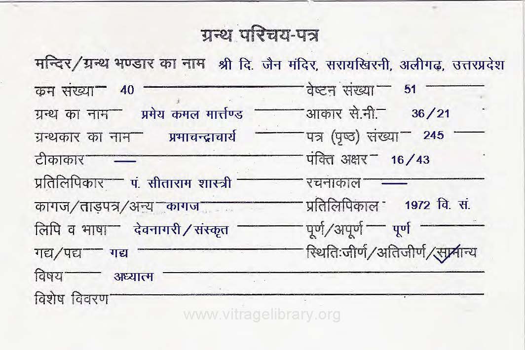 Source | : | Shree Digambar Jain Saraswati Bhandar Naya Mandir, Hathras (U.P.) |