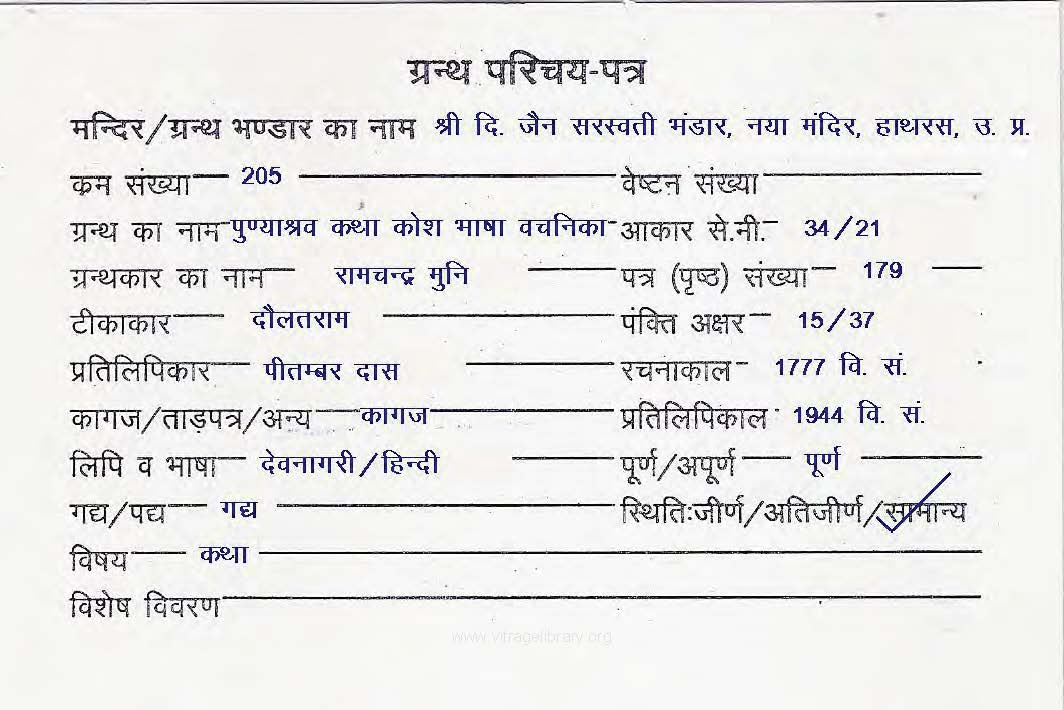 Manuscript Year | : | 1787 Vi. Sa. |