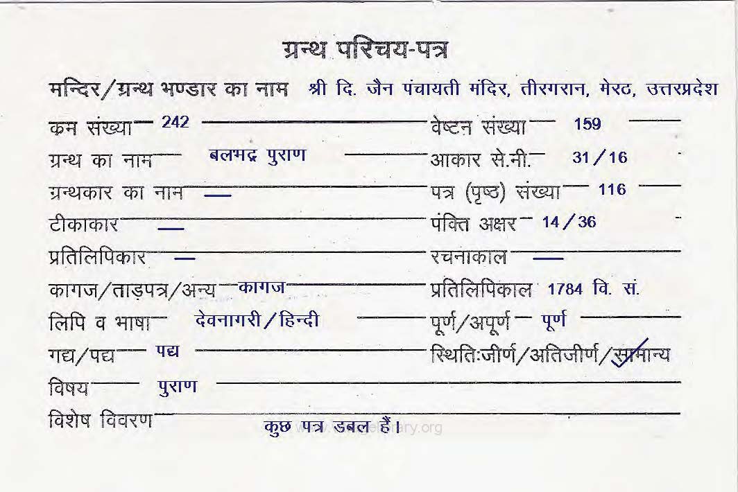 Manuscript Year | : | 1799 Vi. Sa. |