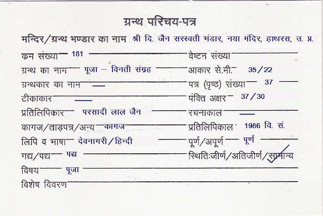 Source | : | Shree Digambar Jain Panchayati Mandir, Teergaran, Meeruth (U.P.) |