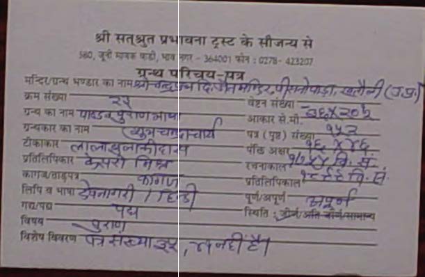 Source | : | Shree Digambar Jain Saraswati Bhandar Naya Mandir, Hathras (U.P.) |