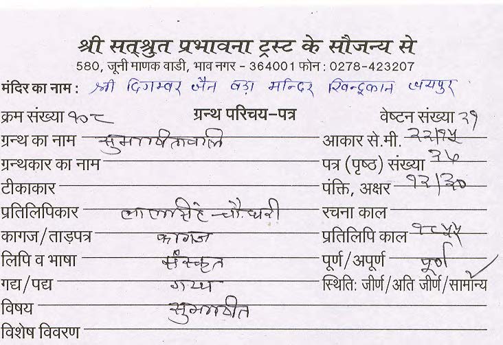 Source | : | Shree Parshwanath Digambar Jain Mandir, Bhattarak Sakalkirti Shrut Bhandar, Idar (Guj.) |
