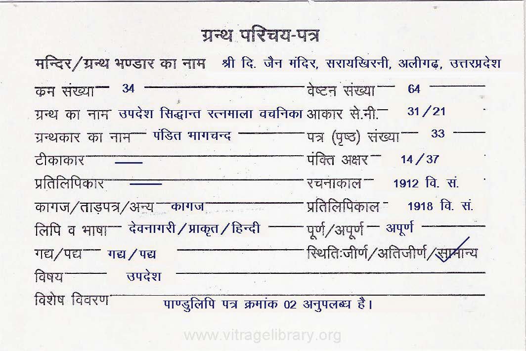 Manuscript Year | : | 1918 Vi.Sa. |
