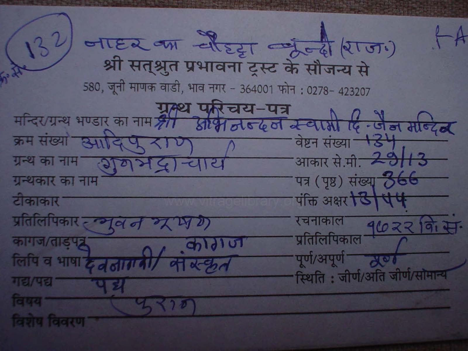 Manuscript Year | : | 1905 Vi. Sa. |