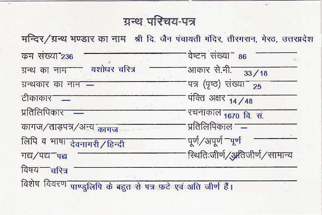 Granth | : | Yashodhar Charitra |