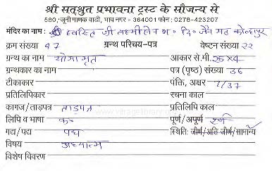 Source | : | Swasti Shree Bhattarak Lakshmisen Digambar Jain Math (Kolhapur) |